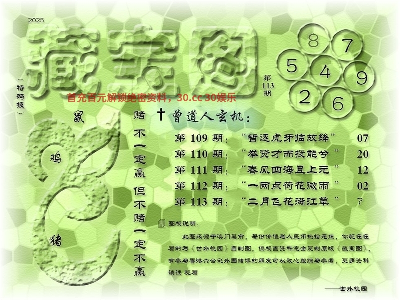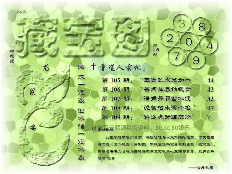 114期藏宝图:【资料正在更新中】 浅解:资料正在更新中 综合解肖:资料正在更新中 |