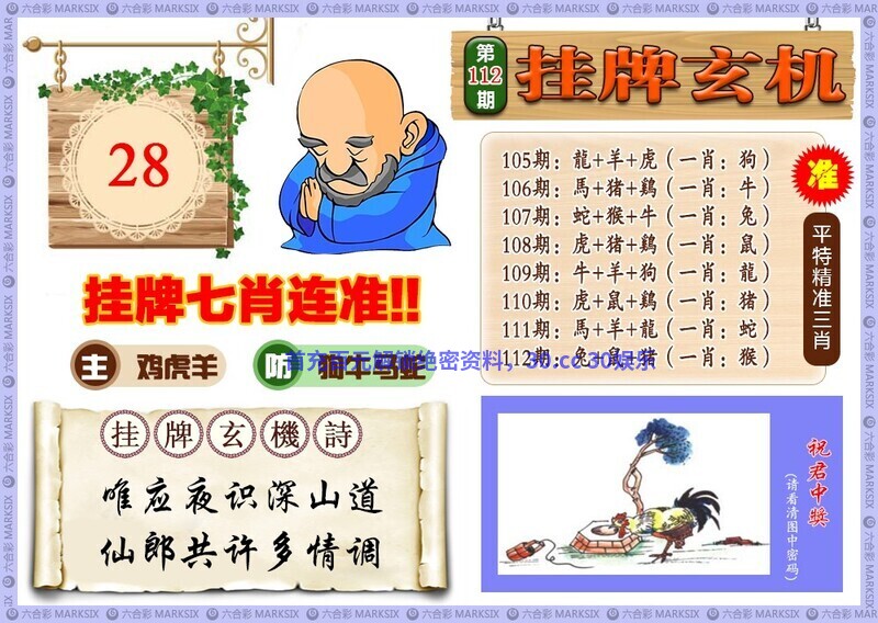 111期:⑧肖【龙狗虎鸡牛马兔猴】开:马12准 |